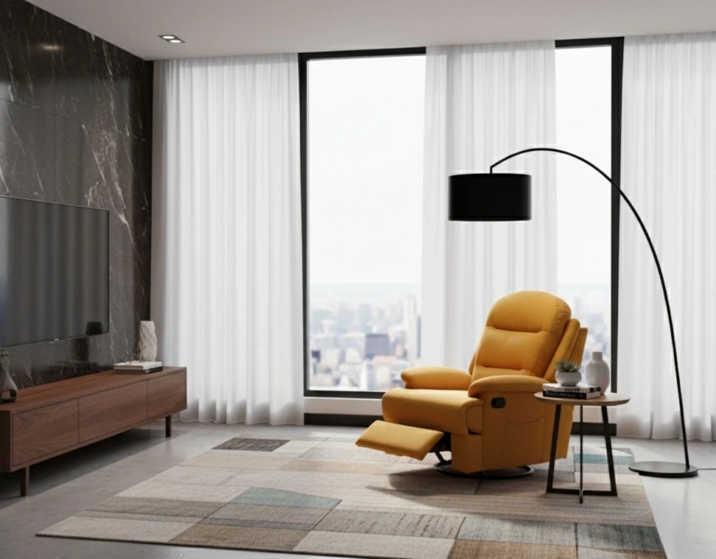 145° Yatış Açısı: Kullanıcının isteğine göre sırt kısmı 145°’ye kadar geriye yaslanabilir, ayaklar düz açıya kadar kaldırılabilir. Böylece TV izleme, kitap okuma veya kısa bir dinlenme için ergonomik pozisyon elde edilir.