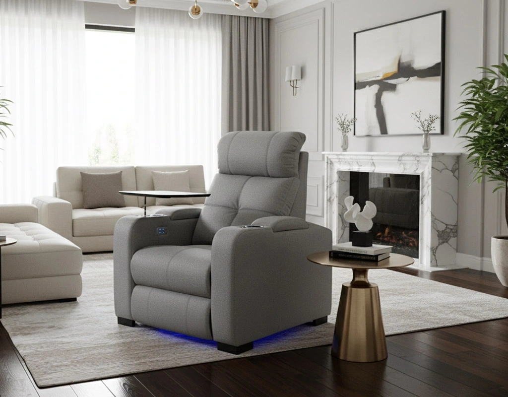 LED mavi ışık, koltuğa modern bir dokunuş katarken gece kullanımında estetik bir ambiyans oluşturur.